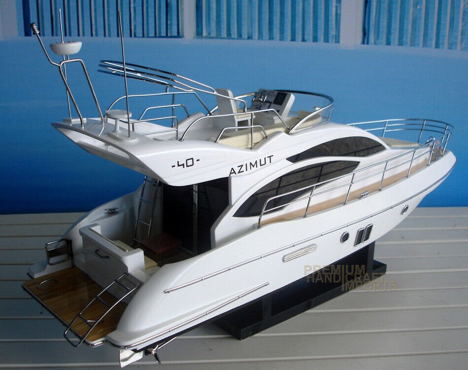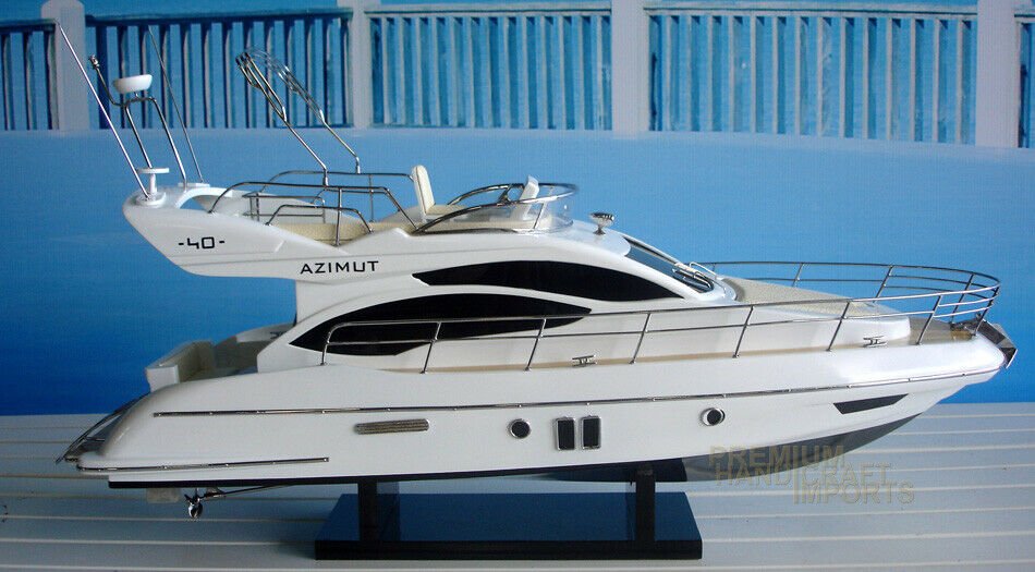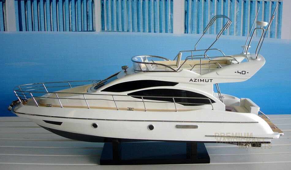 | • The model is 100% scratch built with planks on frame construction method from the drawings. The hull is made of wood and the bottom is white painted, above the waterline is dark blue painted like the color of the real yacht. The deck is joined by tiny strips of wood and has natural color finished.
