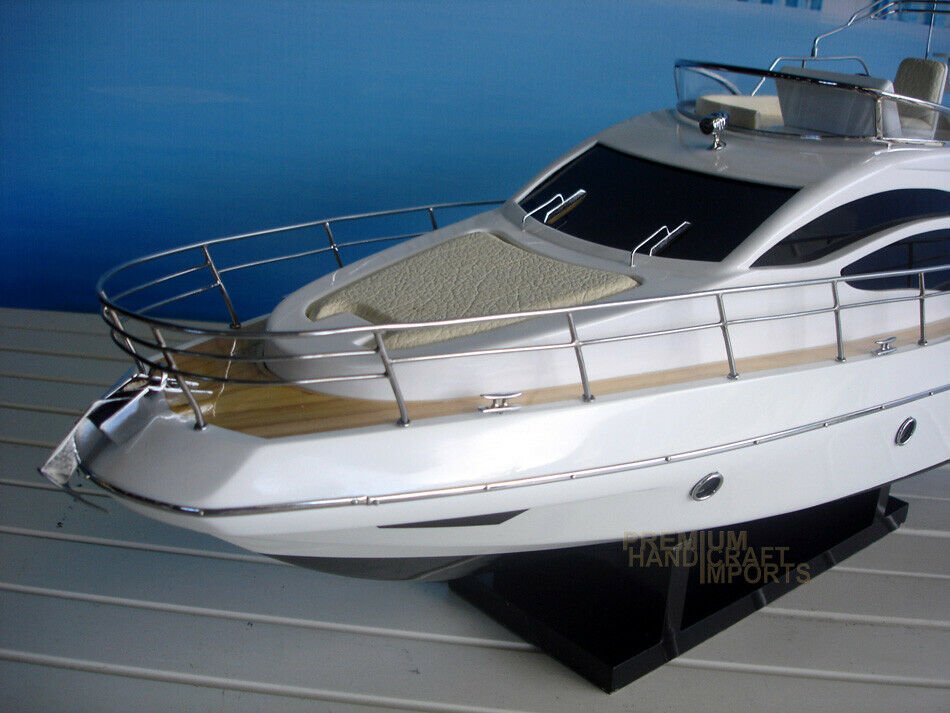 | • The model is 100% scratch built with planks on frame construction method from the drawings. The hull is made of wood and the bottom is black painted, above the waterline is white painted like the color of the real yacht. The deck is joined by tiny strips of wood and has natural color finished.