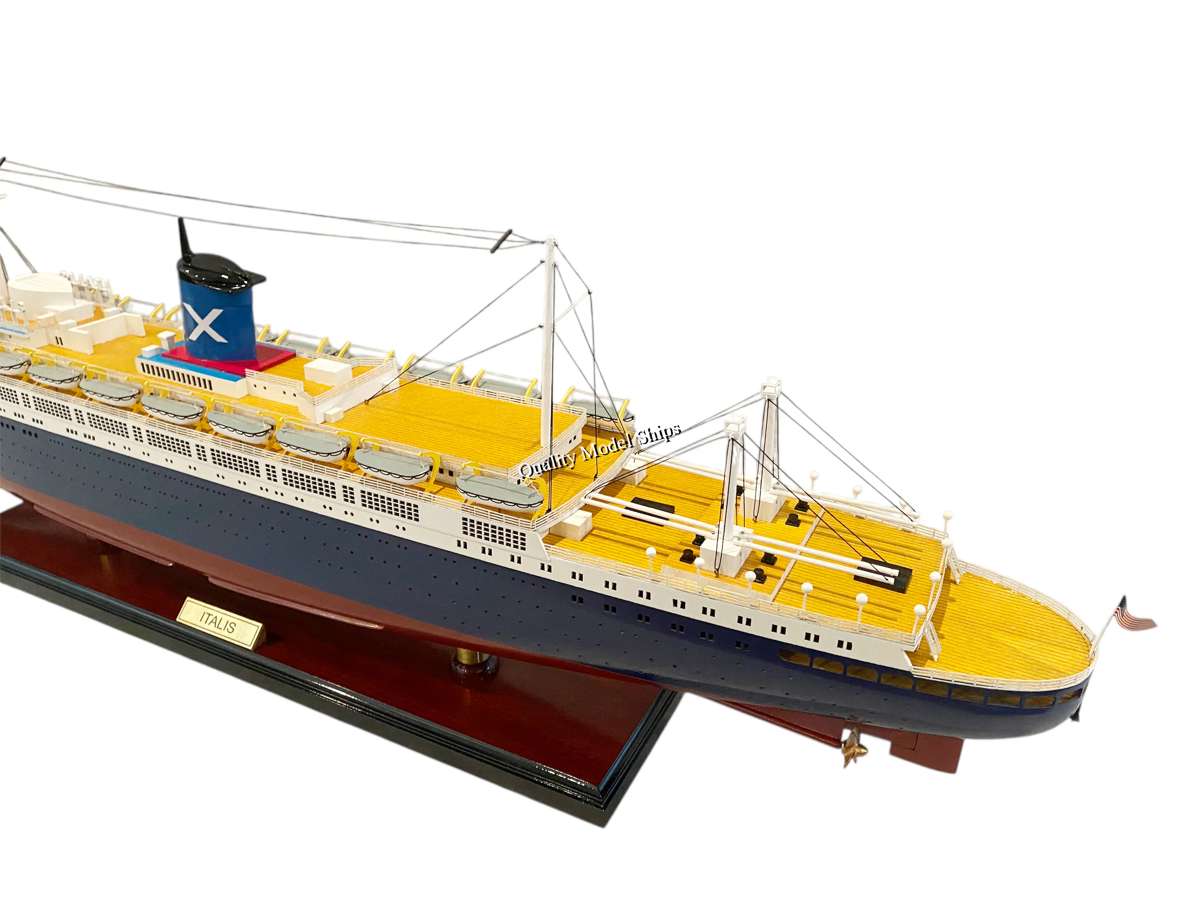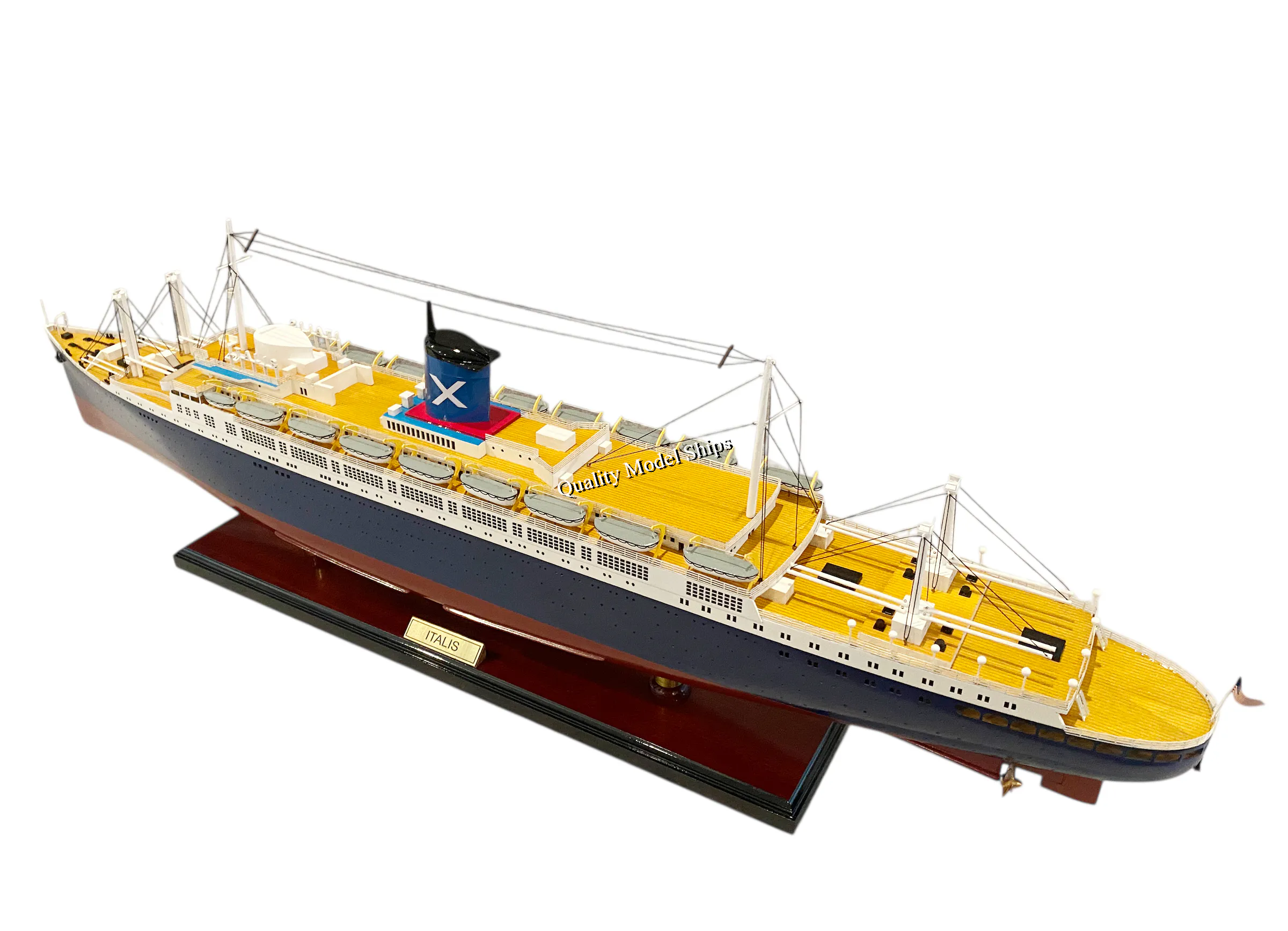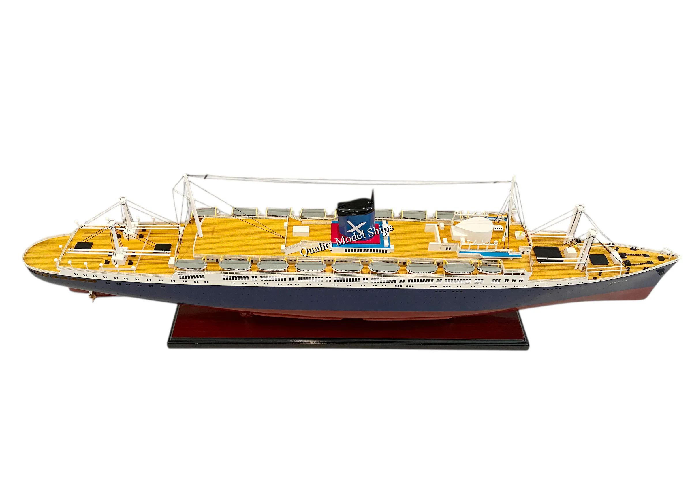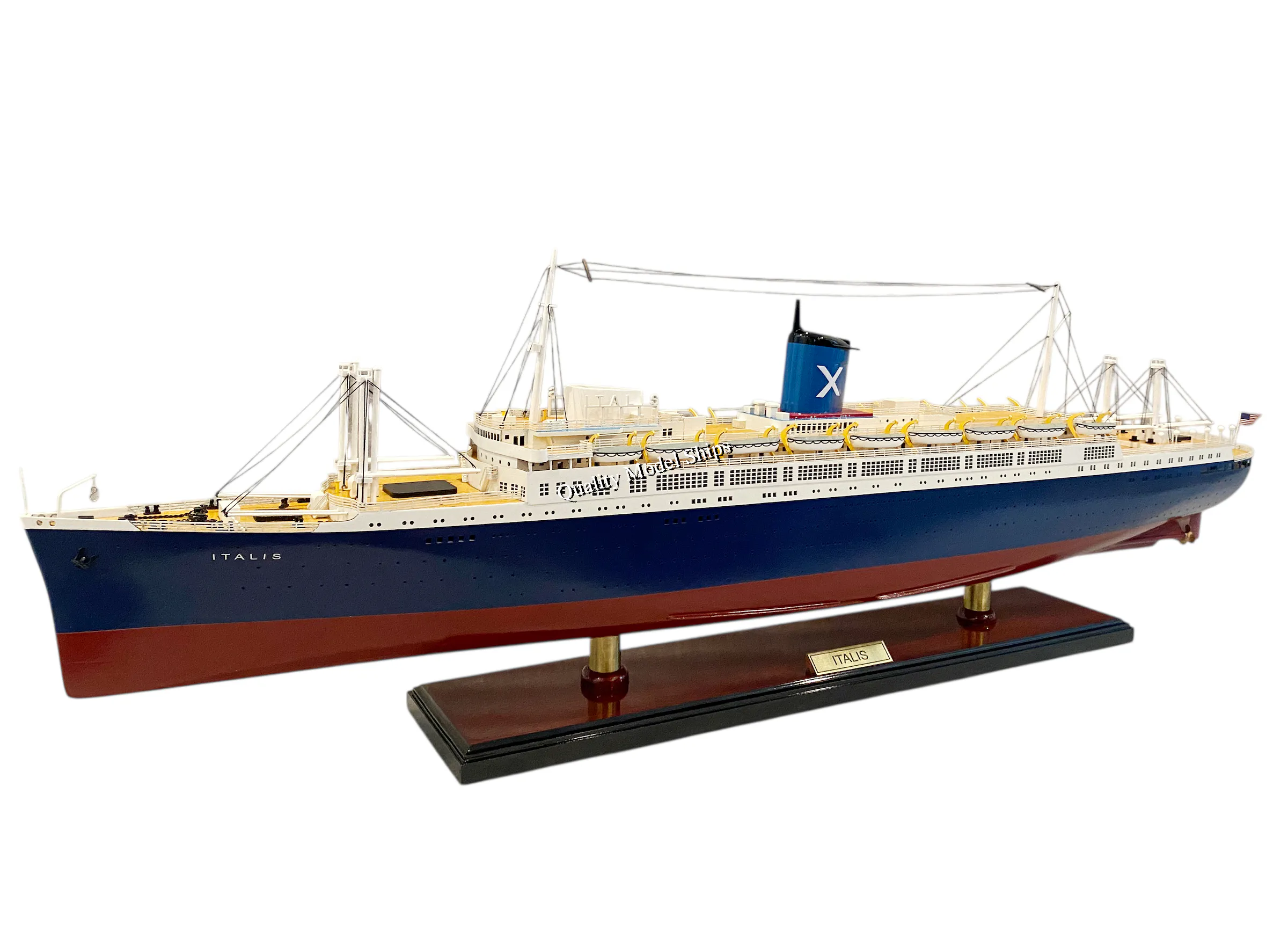 • The hull is made of wood and painted. The windows are cut and see through. The model is ready for display. No KITS.