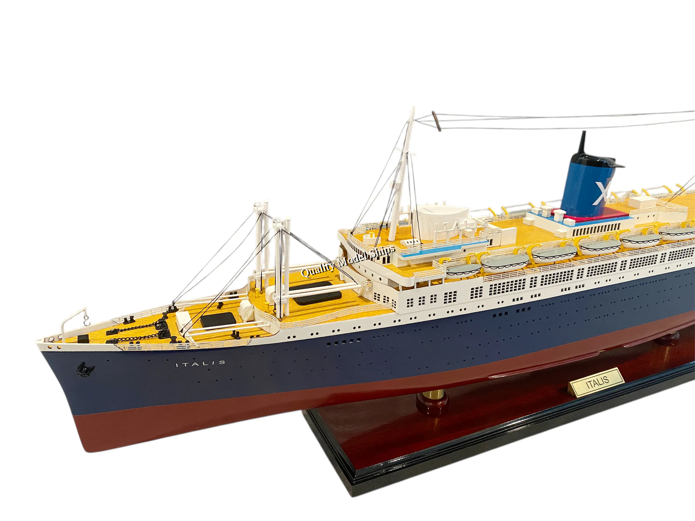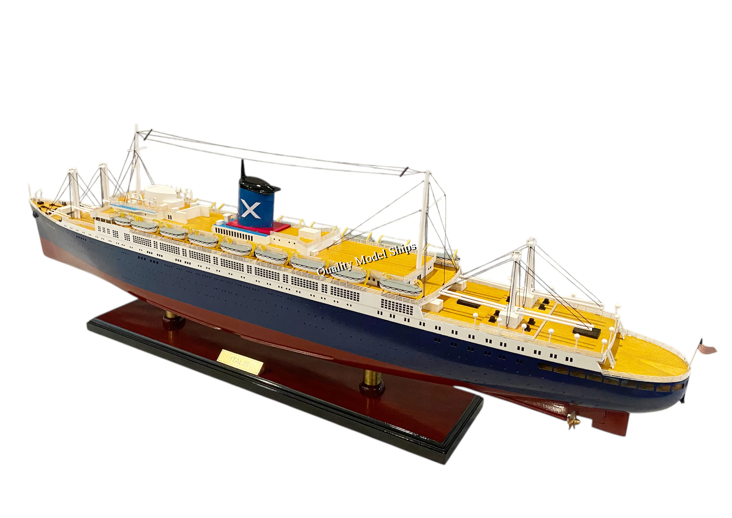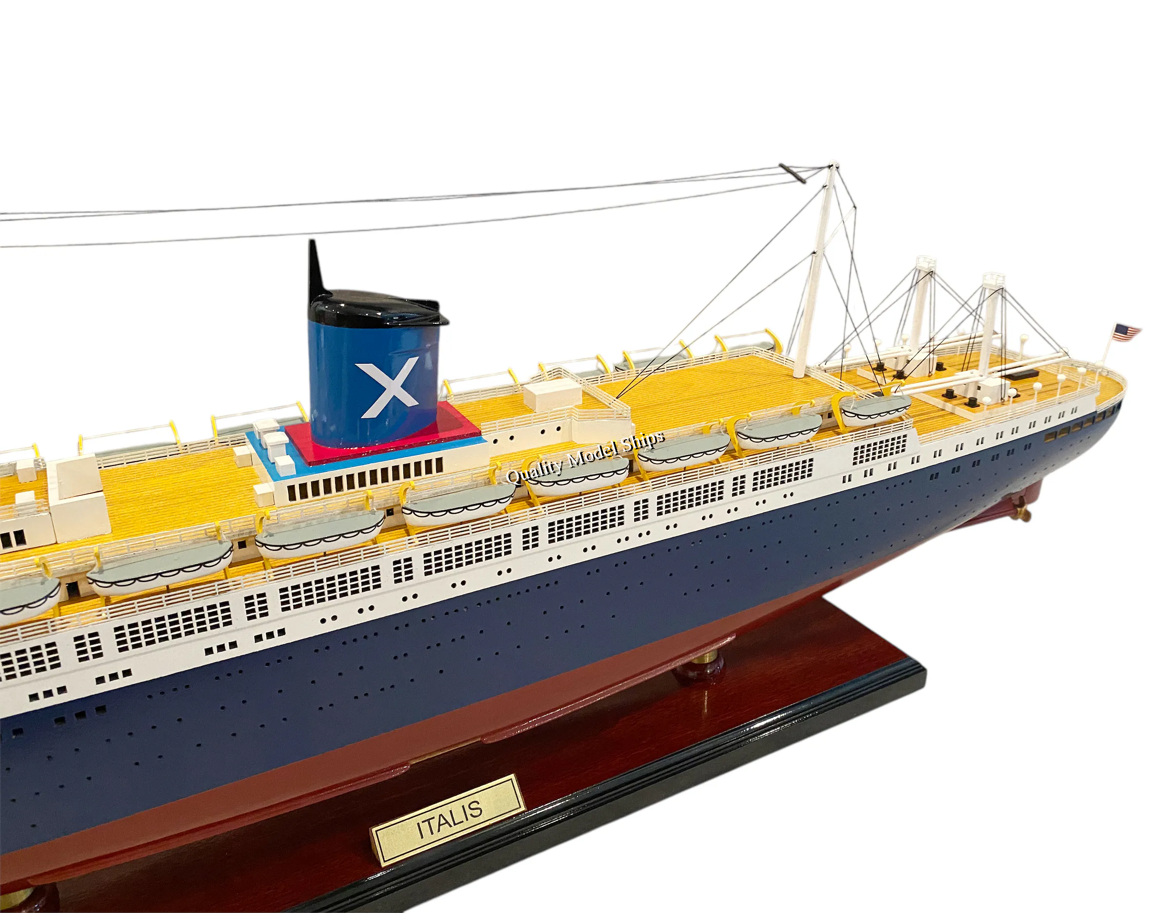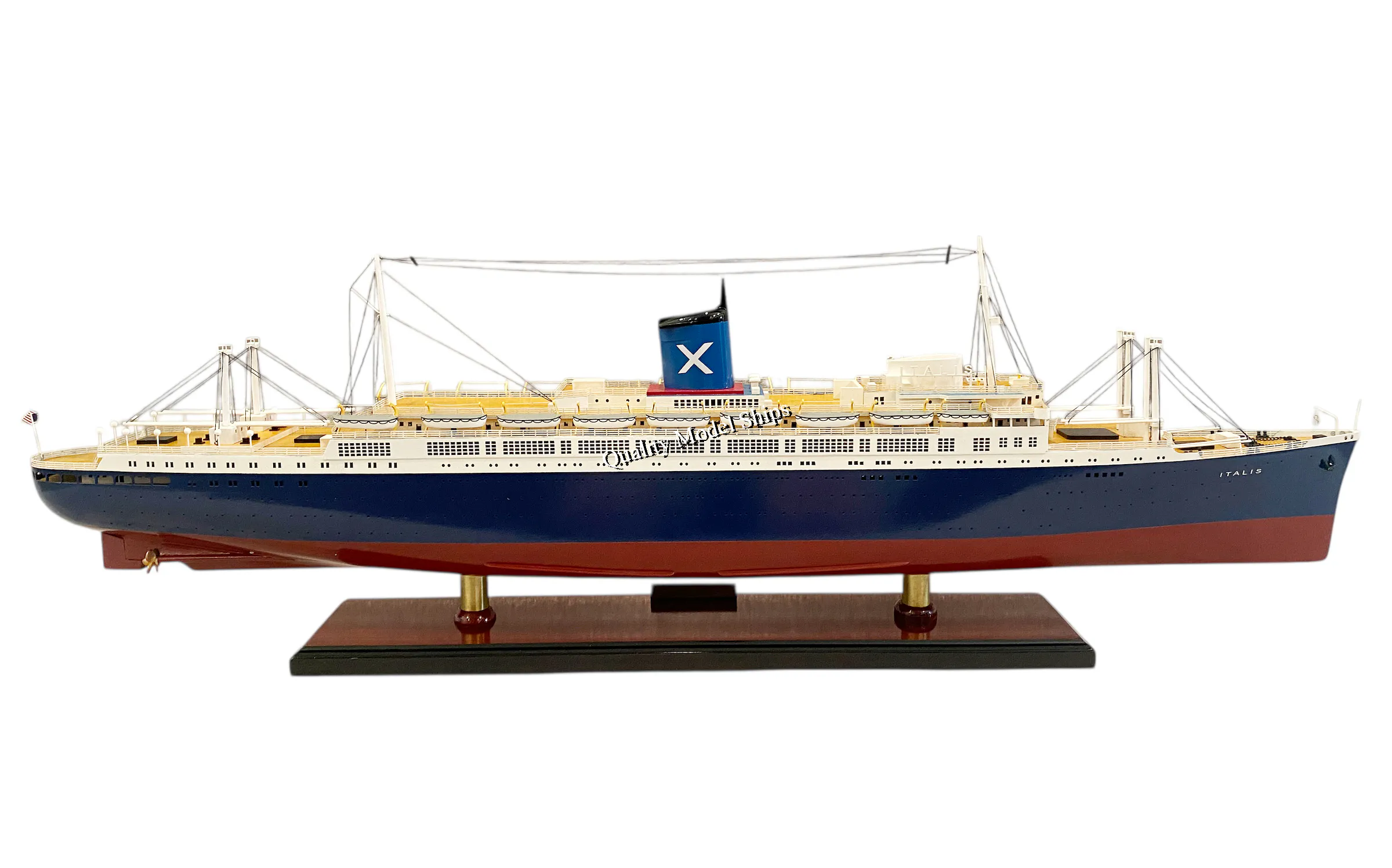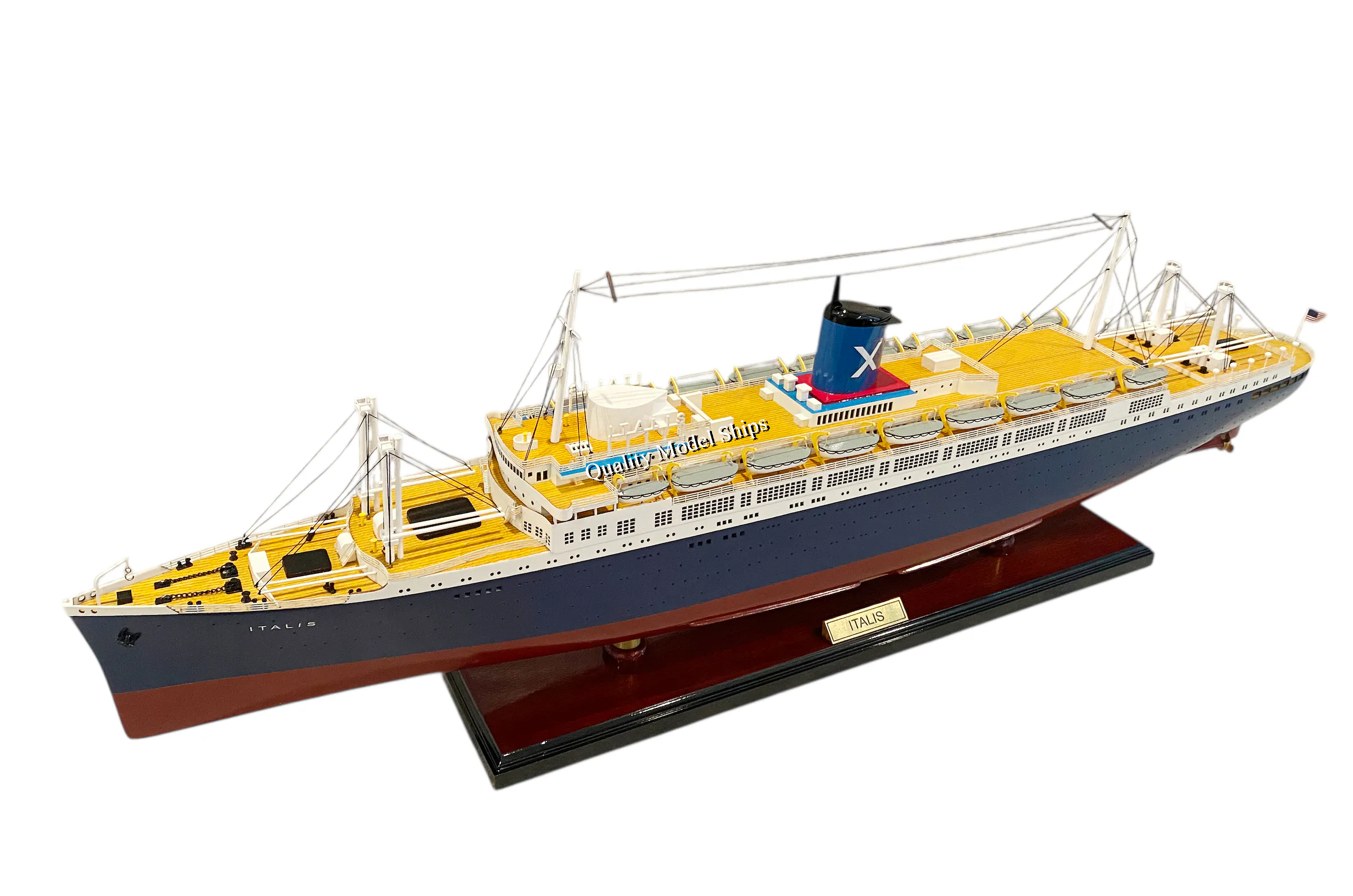• The hull is made of wood and painted. The windows are cut and see through. The model is ready for display. No KITS.