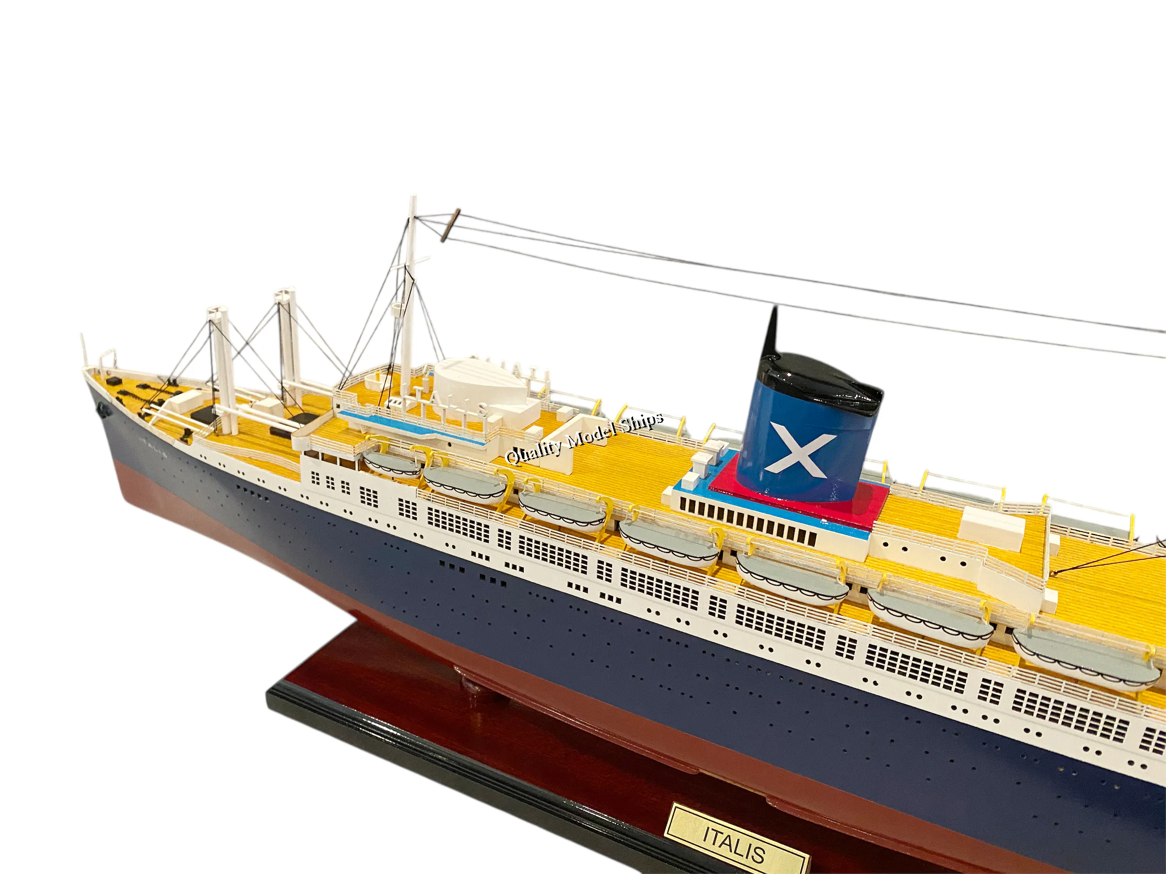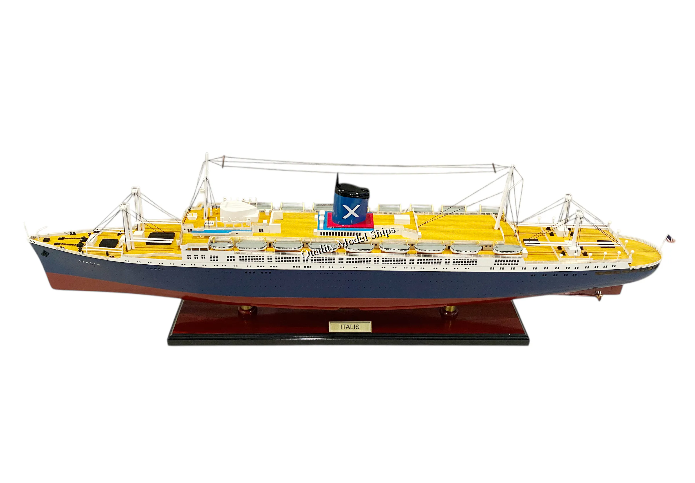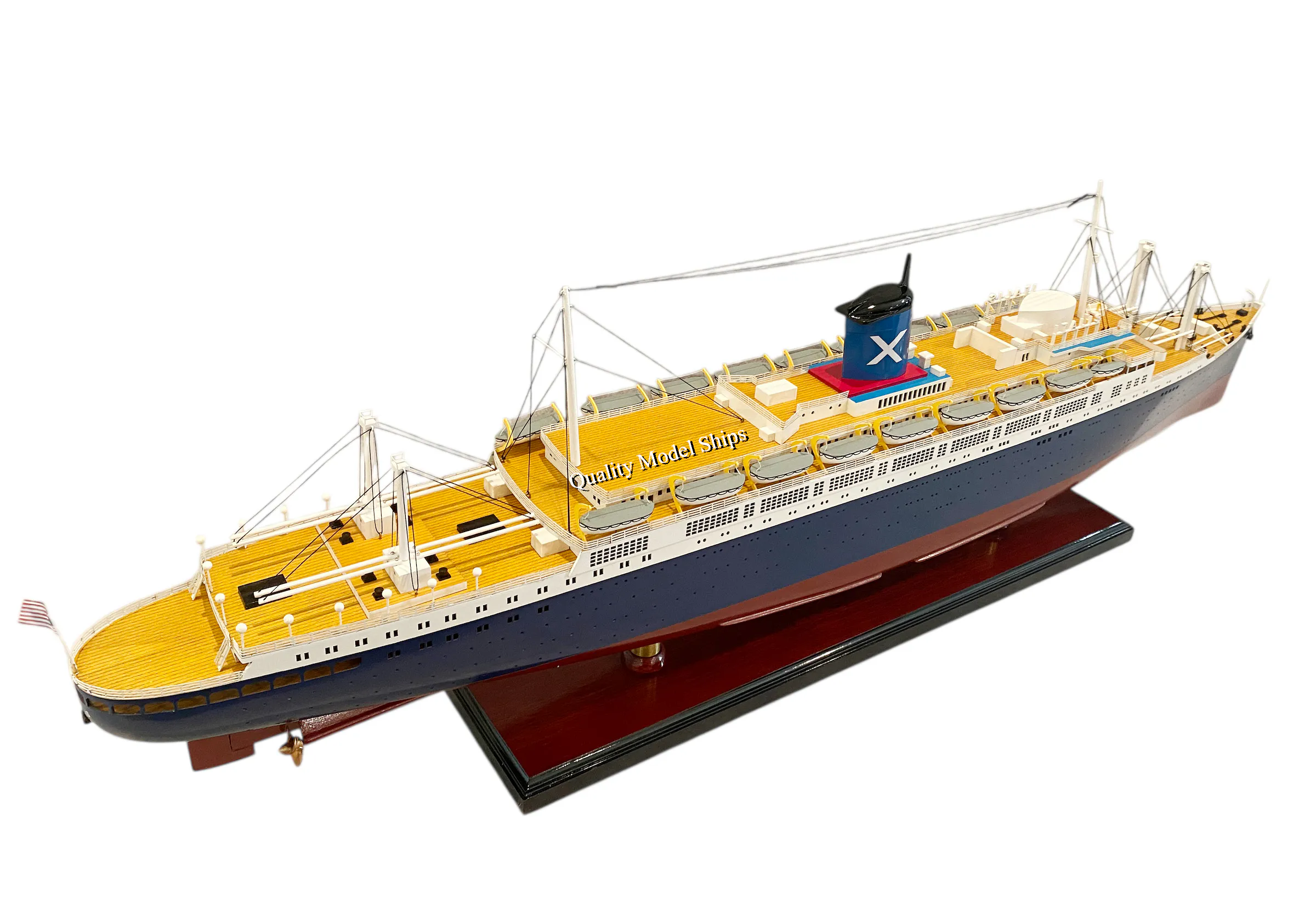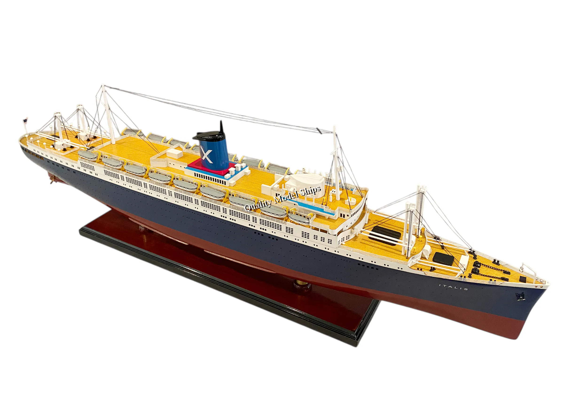 • The hull is made of wood and painted. The windows are cut and see through. The model is ready for display. No KITS.