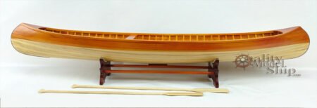| • The model is 100% scratch built with clinker hull construction method by master craftsmen. The building of this model is exactly like building the full size canoe but the only different thing, this is a scale model. The hull is made of wood and painted white outside. The inside hull is constructed with ribs as the original boat. Model comes with a pair of oars and a brass name plate on the base like shown photos.