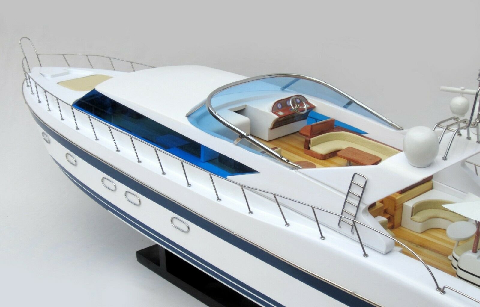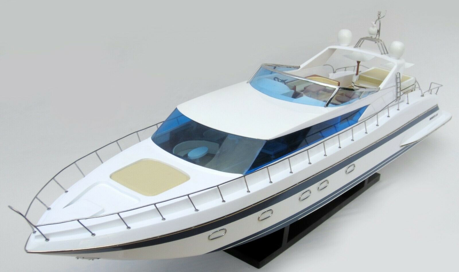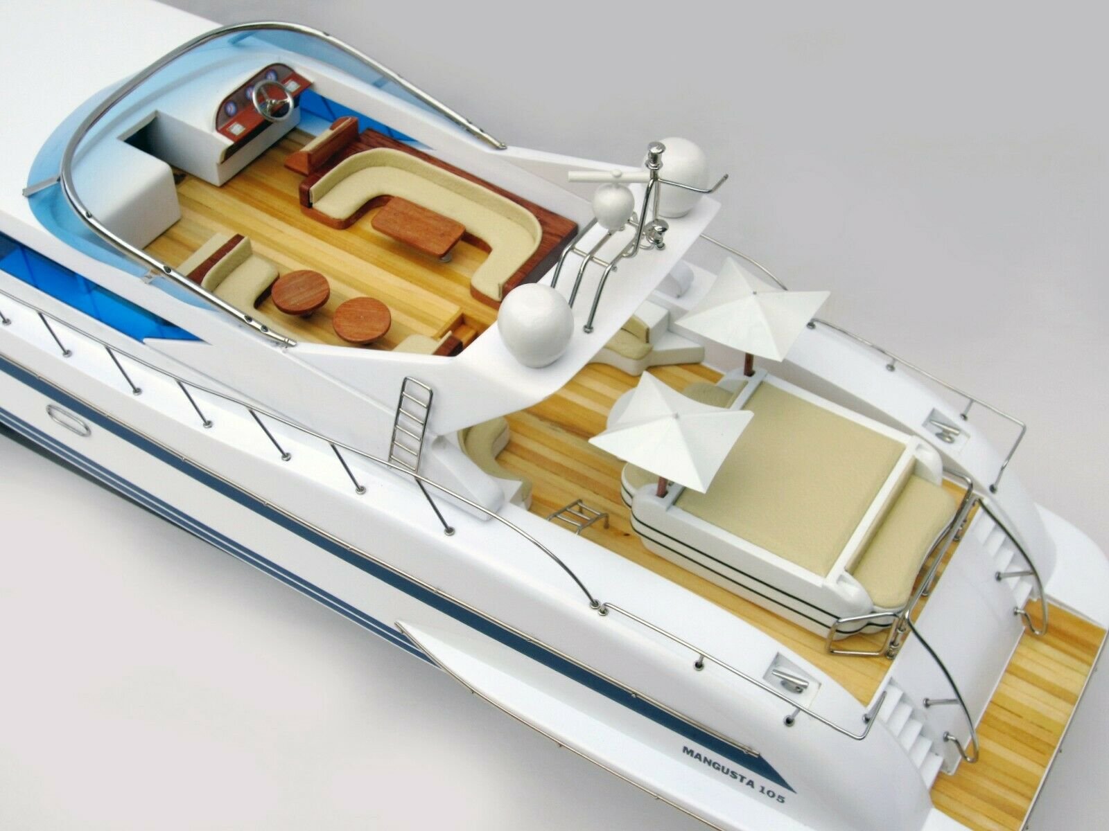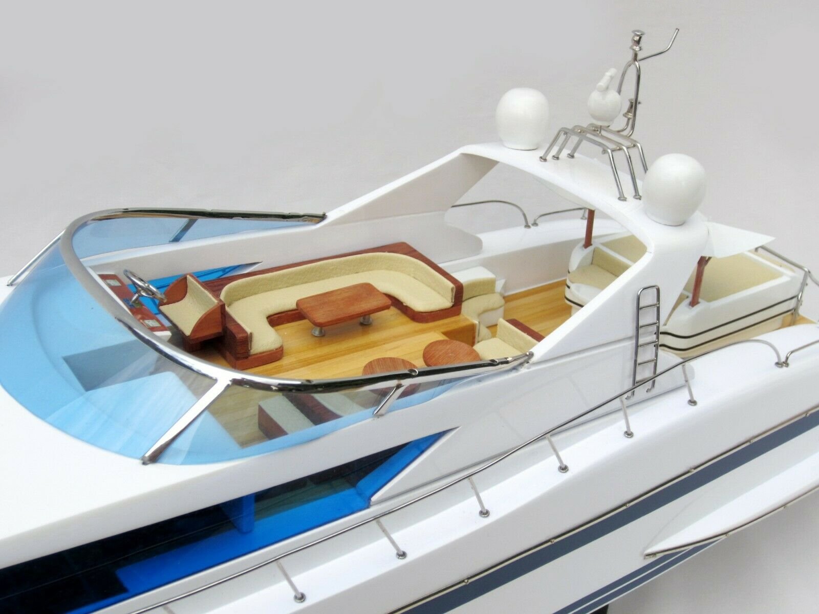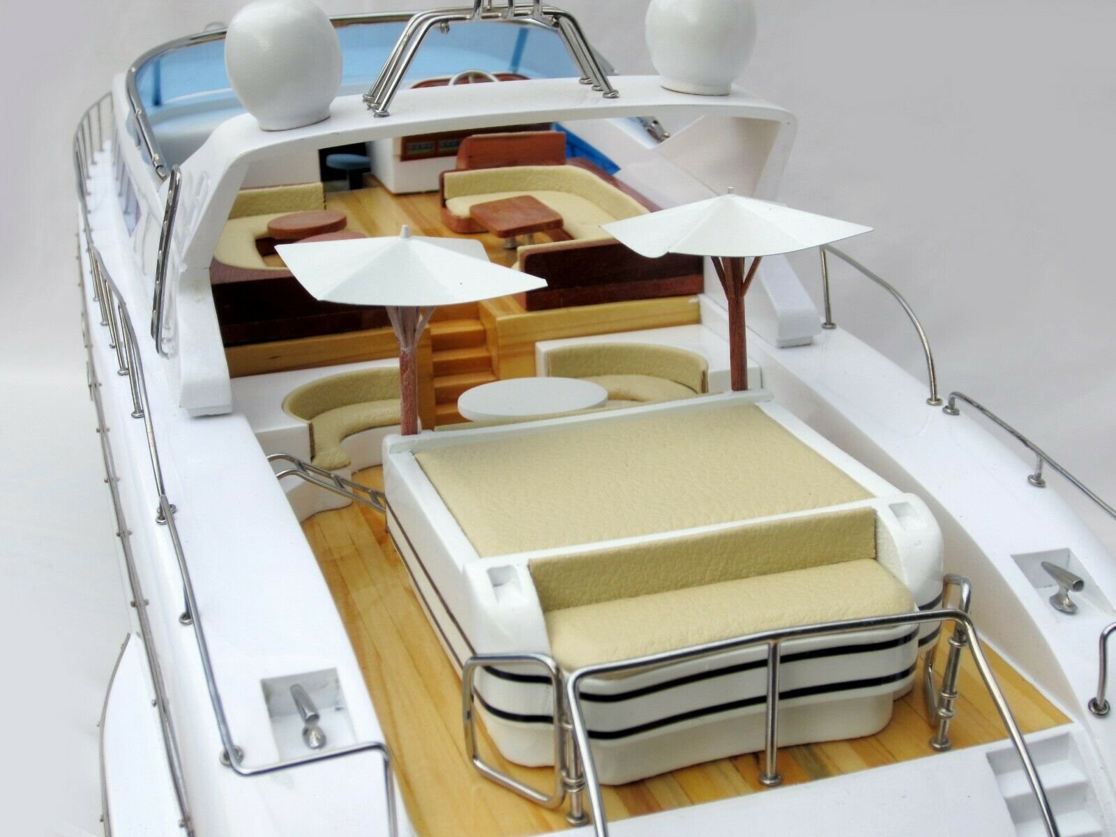 | • The model is 100% scratch built with planks on frame construction method from the drawings. The hull is made of wood and painted like the color of the real yacht. The deck is joined by tiny strips of wood and has natural wood color finished.