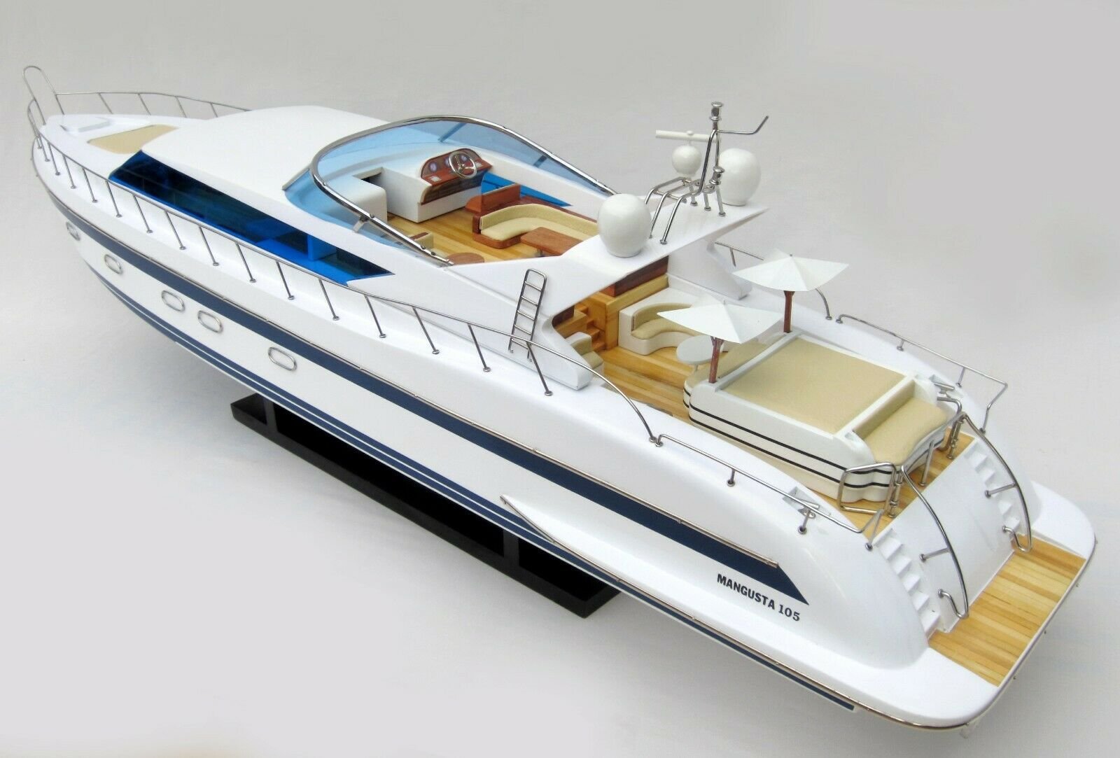 • The model is 100% scratch built with planks on frame construction method from the drawings. The hull is made of wood and painted like the color of the real yacht. The deck is joined by tiny strips of wood and has natural wood color finished.