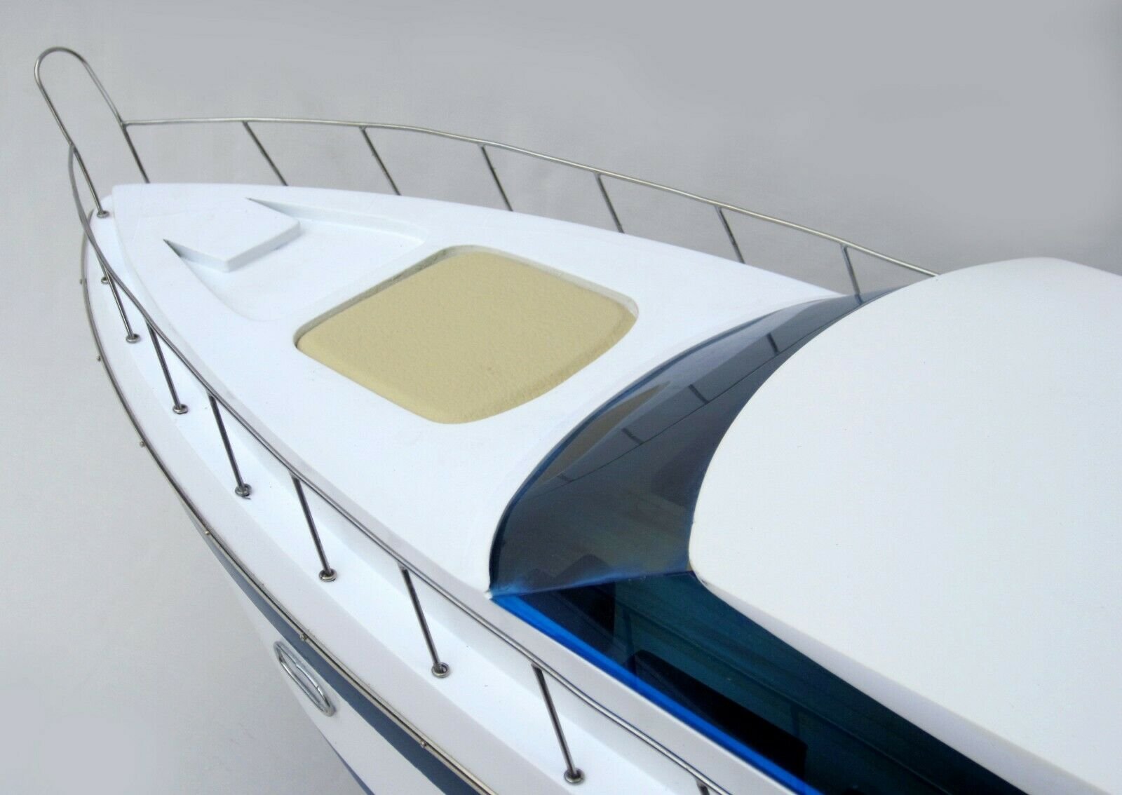• Fittings, trimmings, steering wheels, switches, gauges, gear, rudder and propellers are made from brass chromed. Plush seats are hand-stitched from imitation leather.