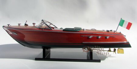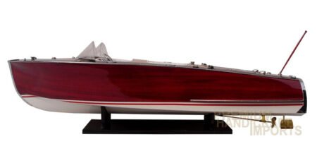 | • The model is 100% scratch built with planks on frame construction method from the drawings. The hull is made of wood and white painted below waterline and the hull is stained as the origin real race boat. The deck is joined with tiny strips of wood and that you still can see the natural wood grains.