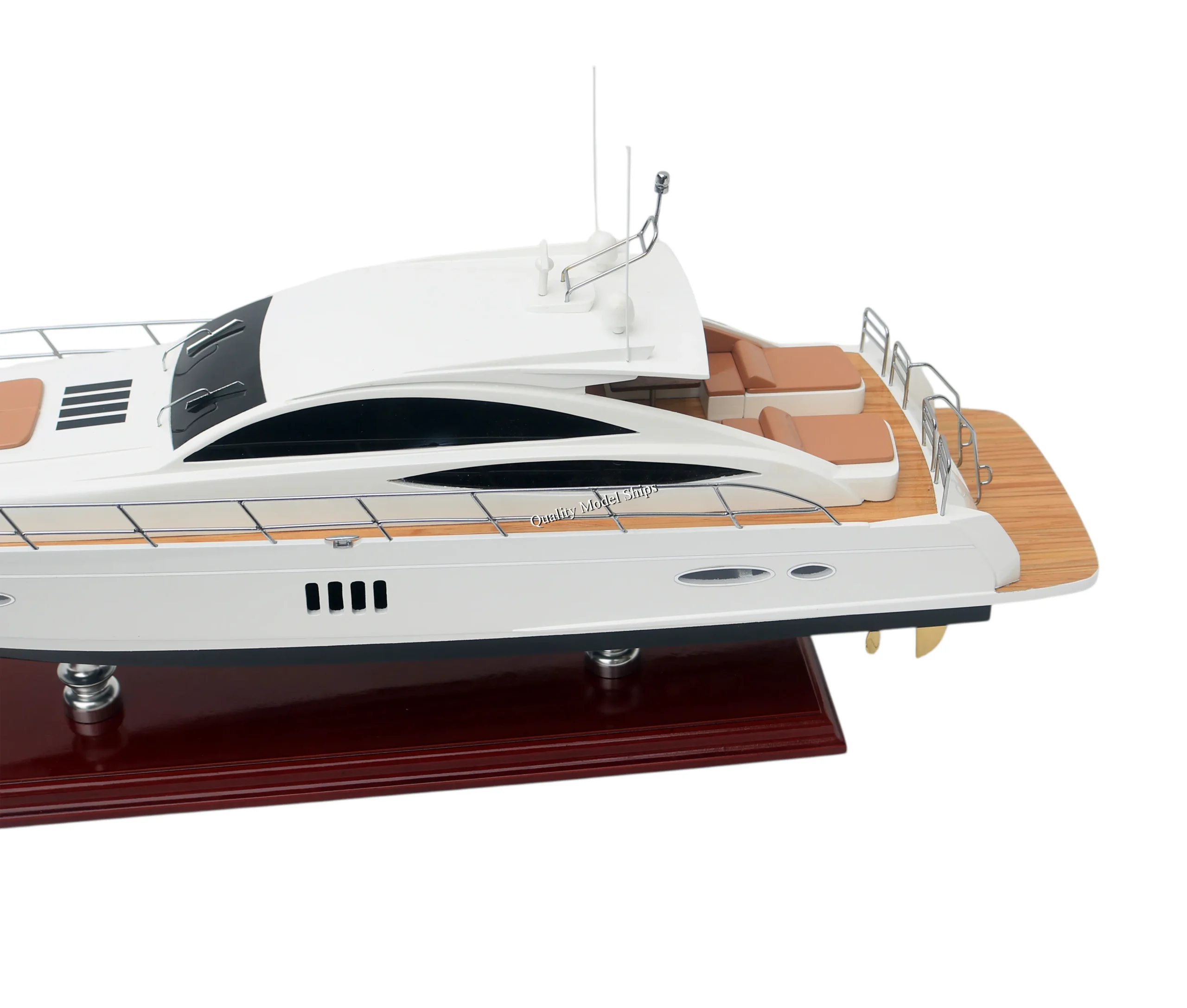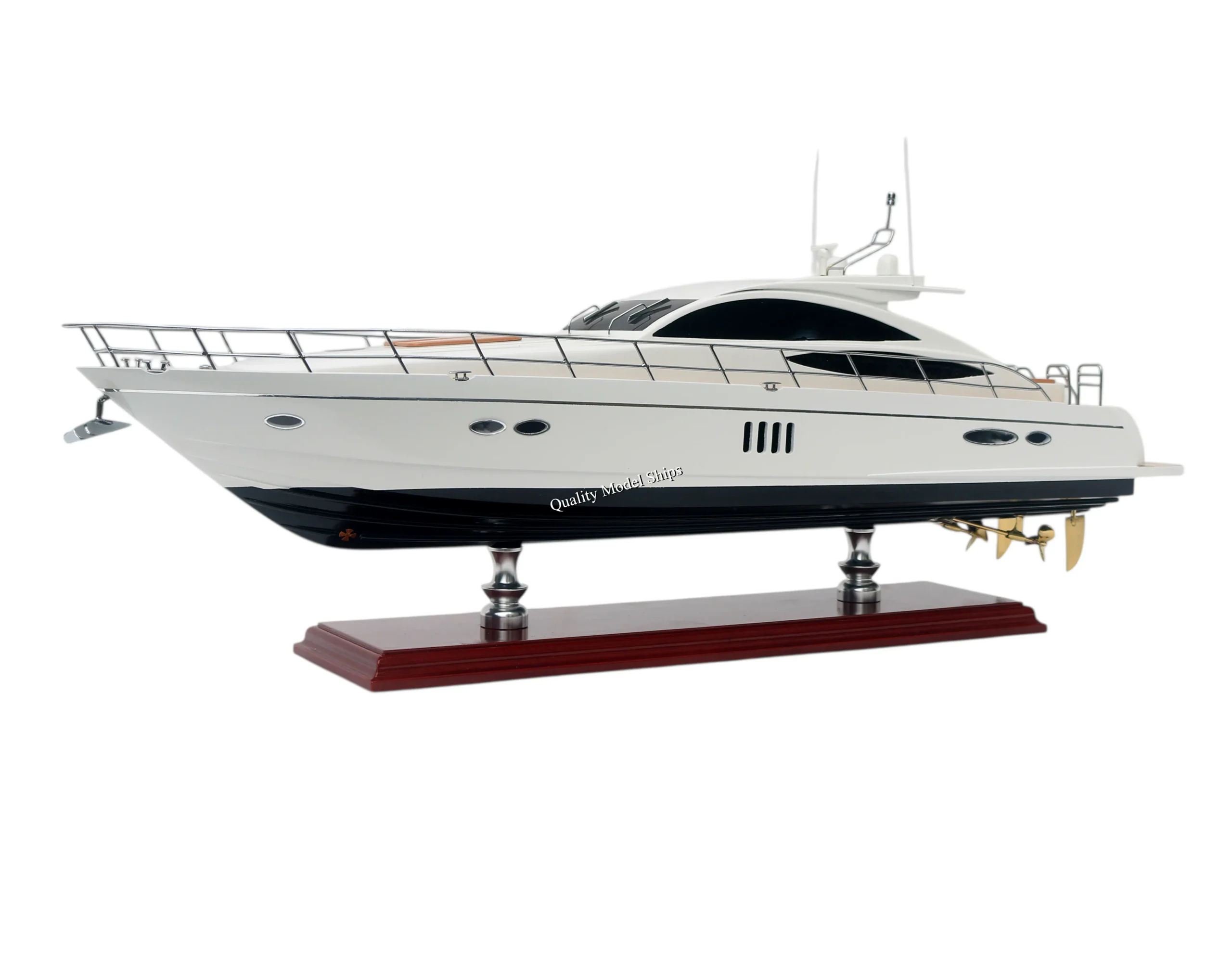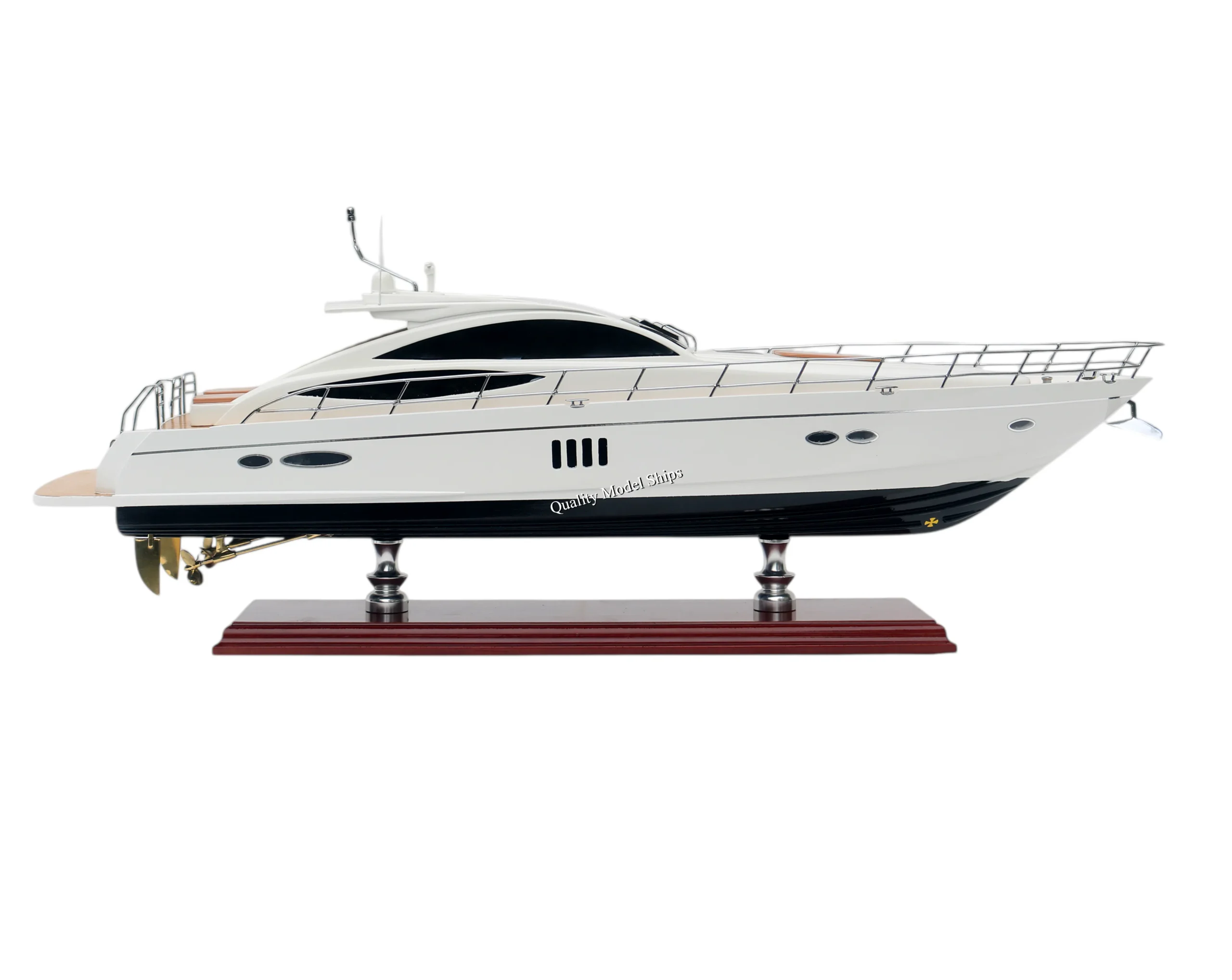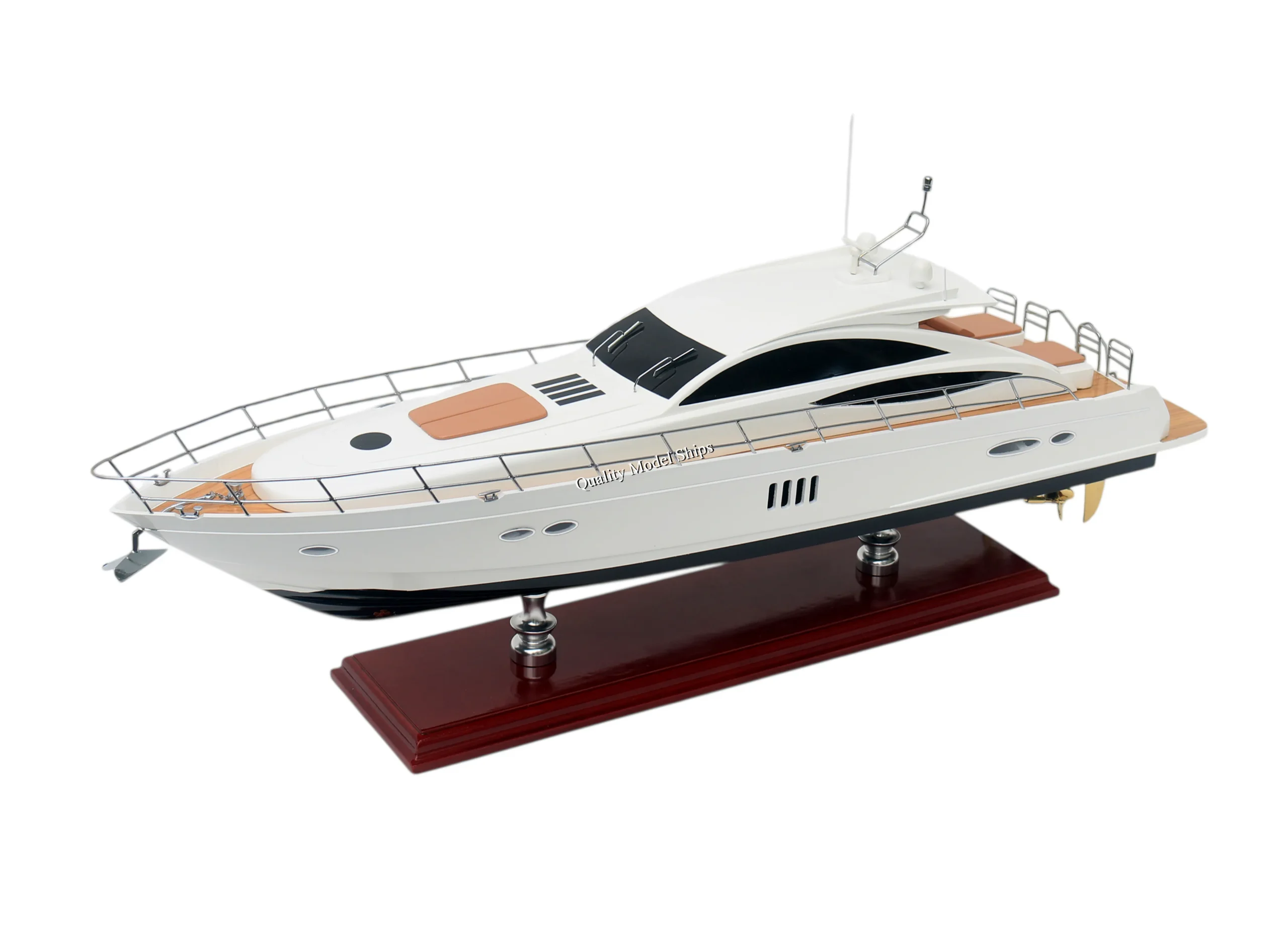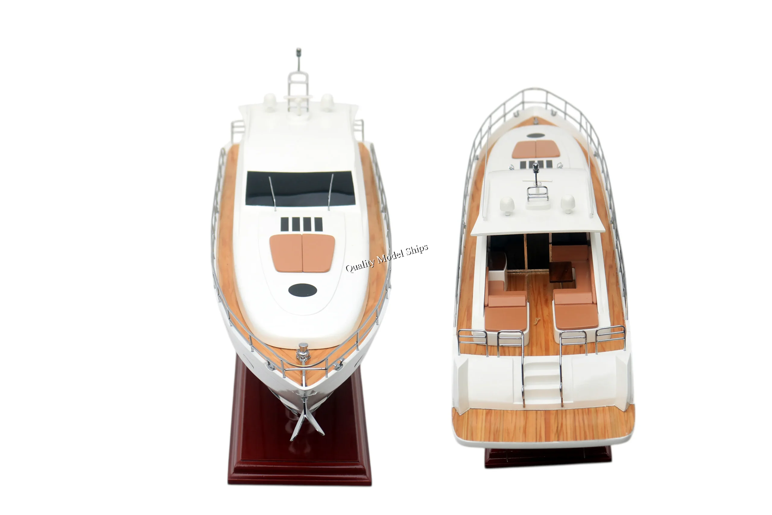 • The model is 100% scratch built with planks on frame construction method from the drawings. The hull is made of wood and painted in the color of the real yacht. The deck is joined by tiny strips of wood and has a natural wood color finish.