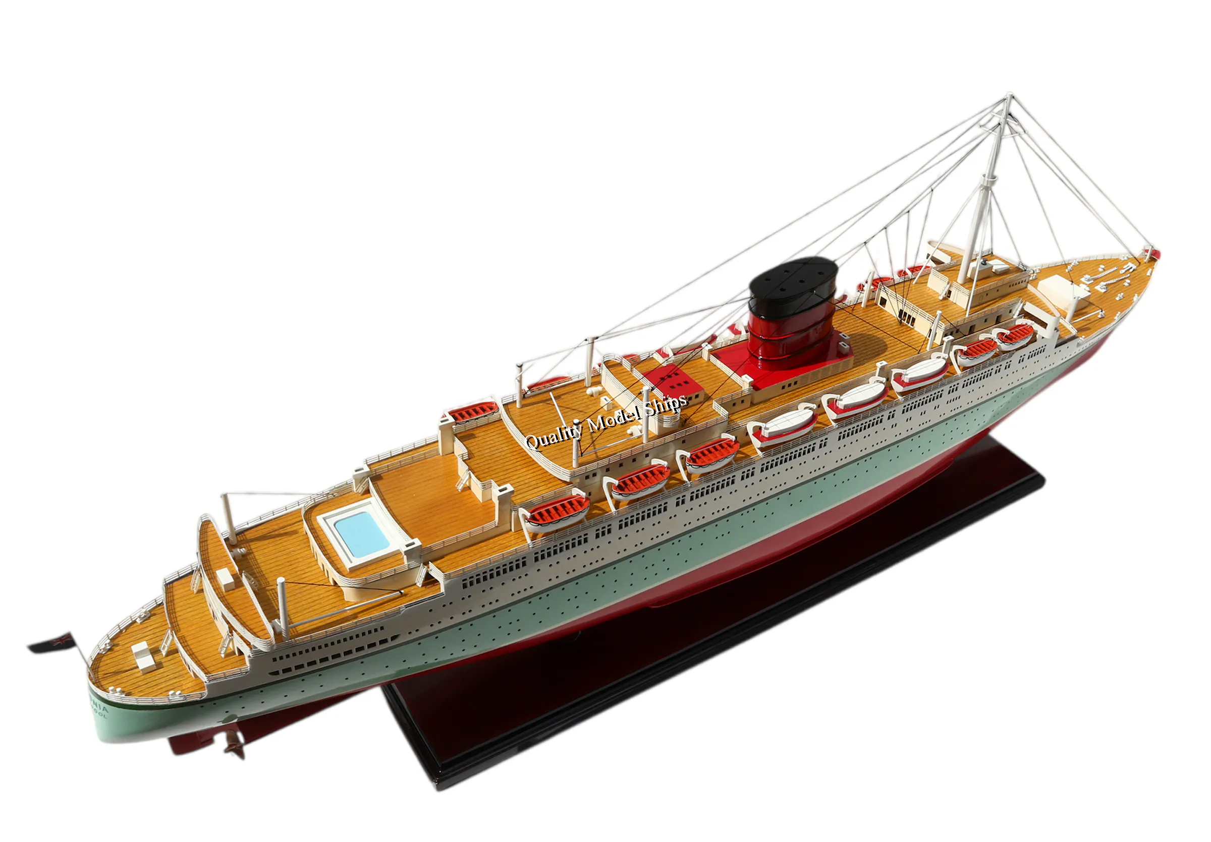 - The hull is made of wood and painted. The windows are cut and see through. Model is built with lights and ready for display.
