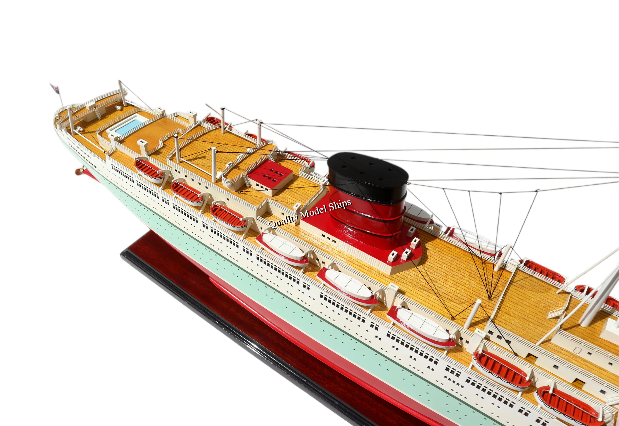 • The hull is made of wood and painted. This model is not a kit and ready for display.