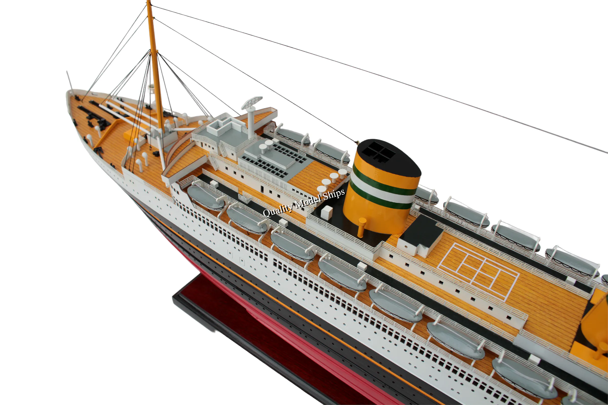 | Content | • The model is 100% scratch built with planks on frame construction method from the drawings.• The hull is made of wood and painted. This model is not a kit and ready for display.• Model comes with a display base and a brass name plate as shown photos.• Specifications: 36.22L x 5.90W x 12.60H (inch) or 92L x 15W x 32H (cm)• Brand new product. Buyer from Alaska, Puerto Rico or Hawaii, please contact us for shipping cost.• Item ship from our warehouse in Houston Texas or could be shipped directly from our factory if they are not available in our warehouse. We often ship by UPS/ FedEx.• International buyer pays any duty/ import tax if any.Return/ Exchange Policy• For some reasons if you wish to return the item, please consider not to open the item out of the wooden crate or open the item out of the styrofoam. You can open the carton box, lift up the whole wooden crate and check the models that are packed in wooden crate. For the items are packed in solid styrofoam, you can open the carton box, lift up the top part (styrofoam lid) and check the model. Please do not cut any strips or take the model out of the wooden crate or out of the styrofoam. It is very risky of damages to the item when you return if you open or remove the item out of the wooden crate or the styrofoam. We only accept and refund in full when the model is returned in good shape.• Returned or exchanged products must be in brand-new, original condition, and have all original packaging, materials, and accessories.• Buyer pays return shipping.• 15% restocking fee might apply. | • The model is 100% scratch built with planks on frame construction method from the drawings.