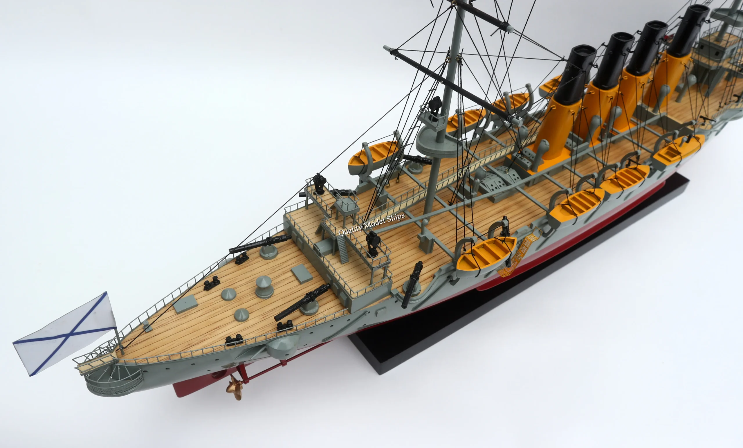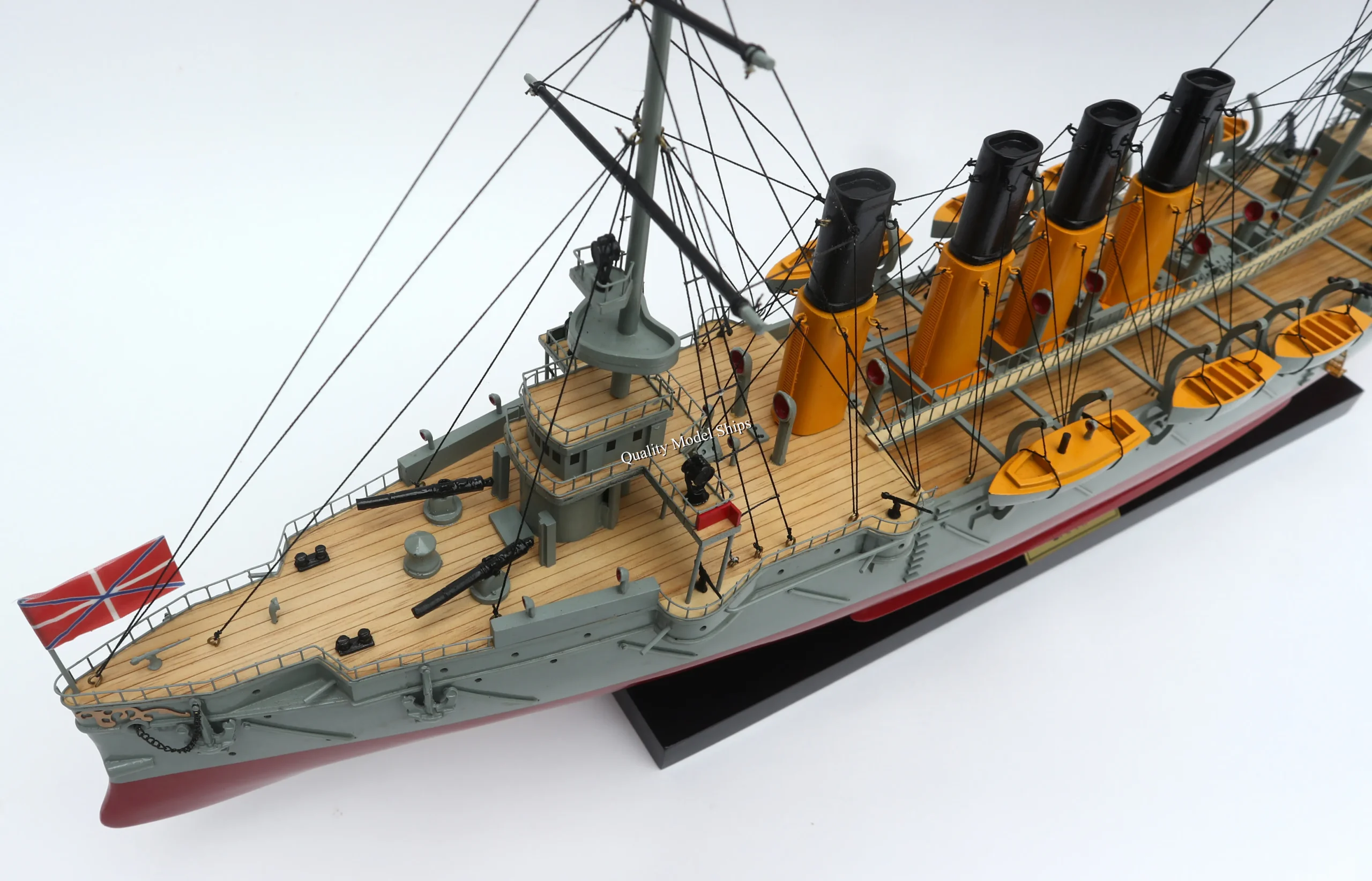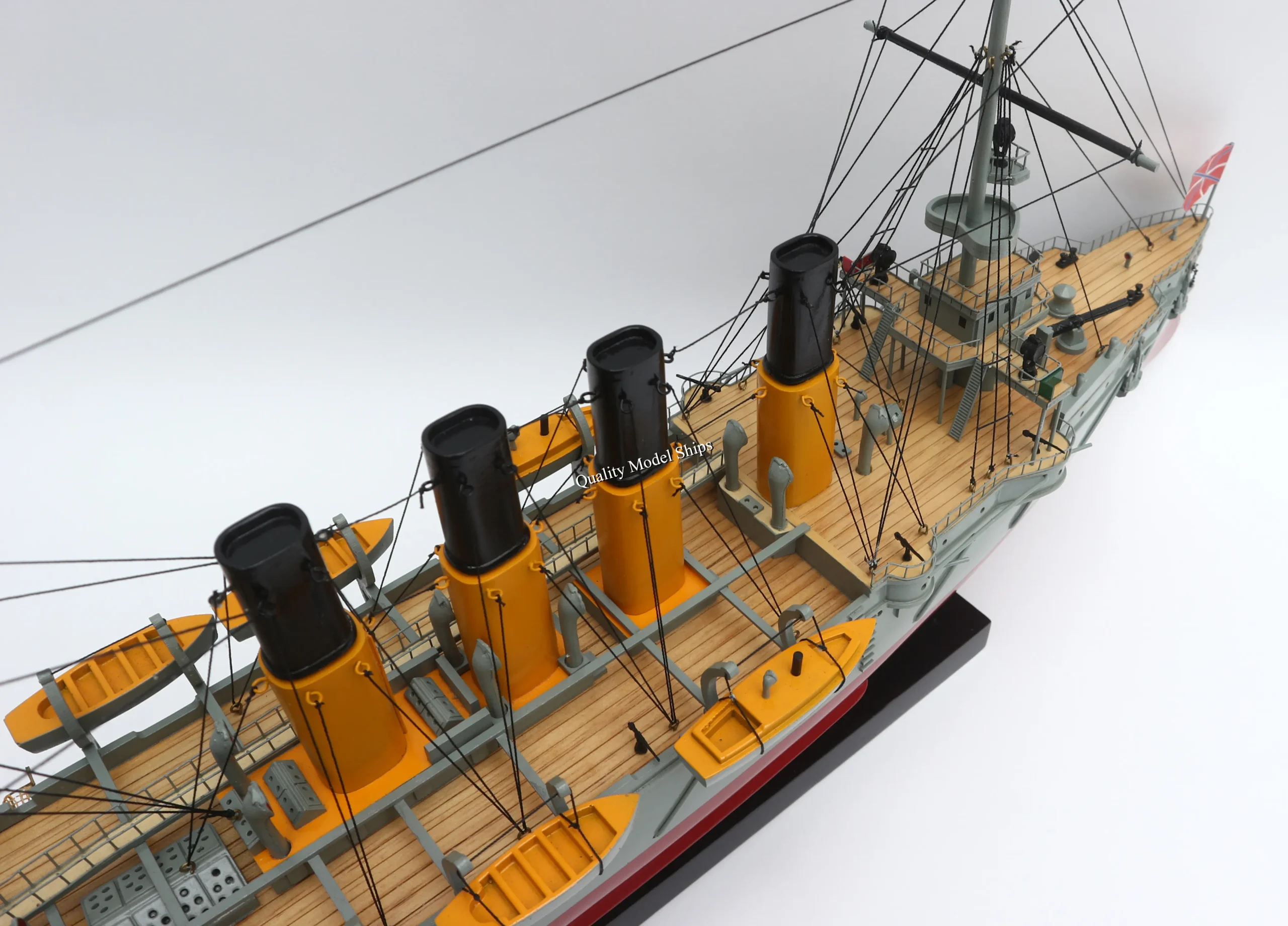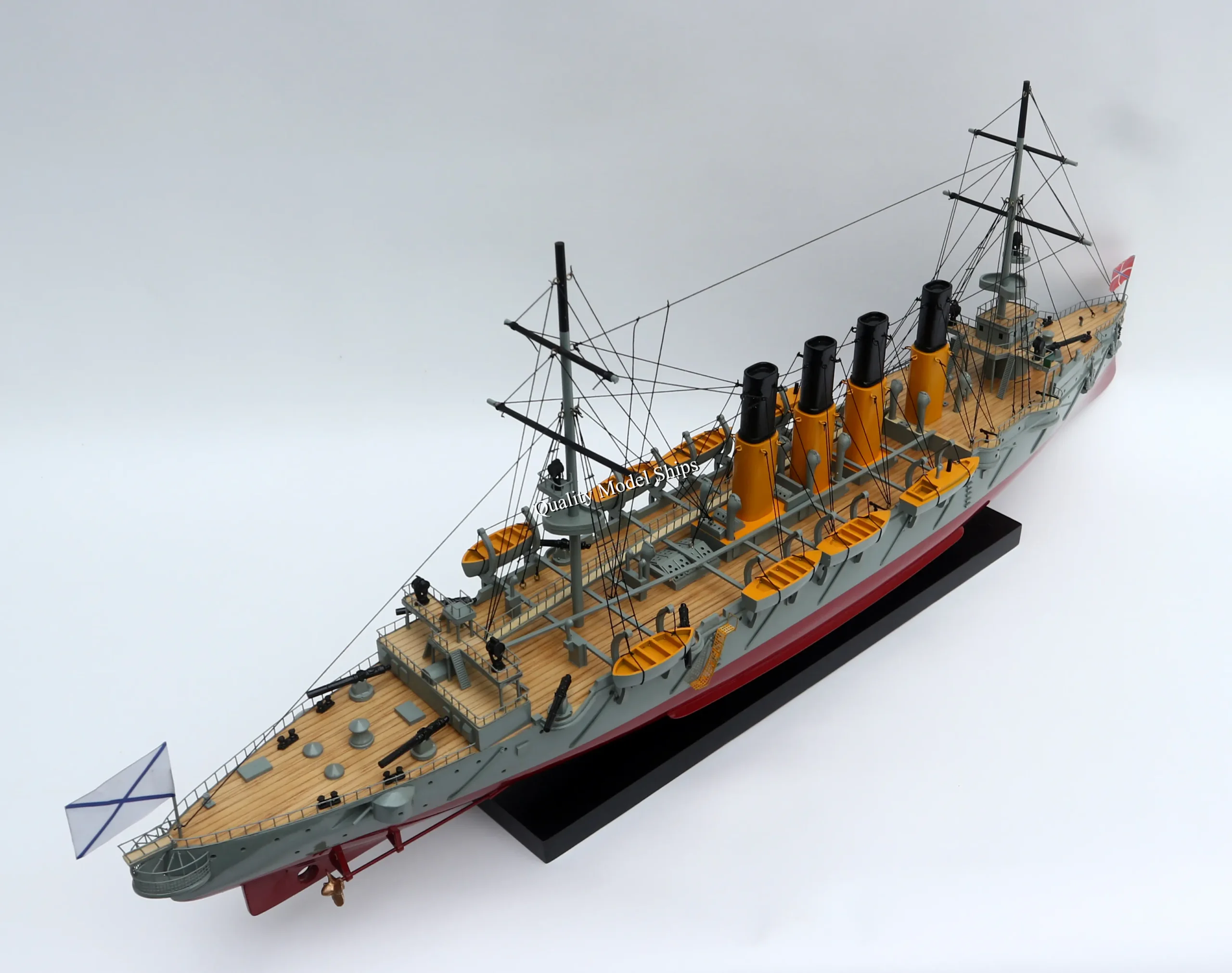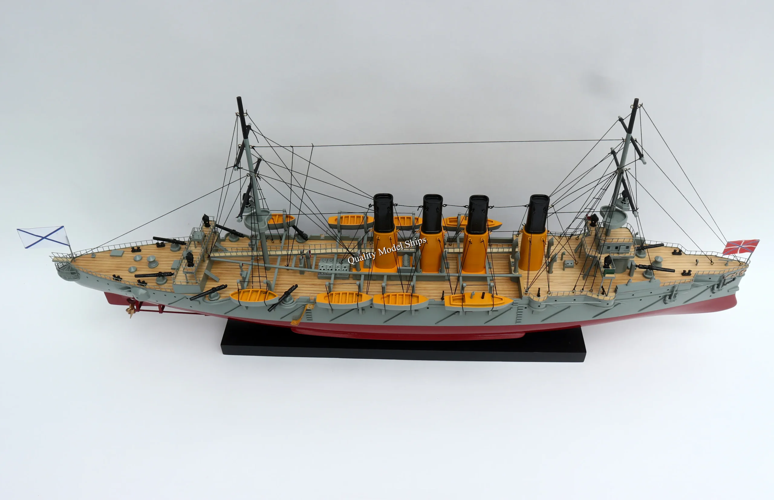 • The hull is made of wood and painted with white/ red hull, grey deck. This model is not a kit and ready for display.
