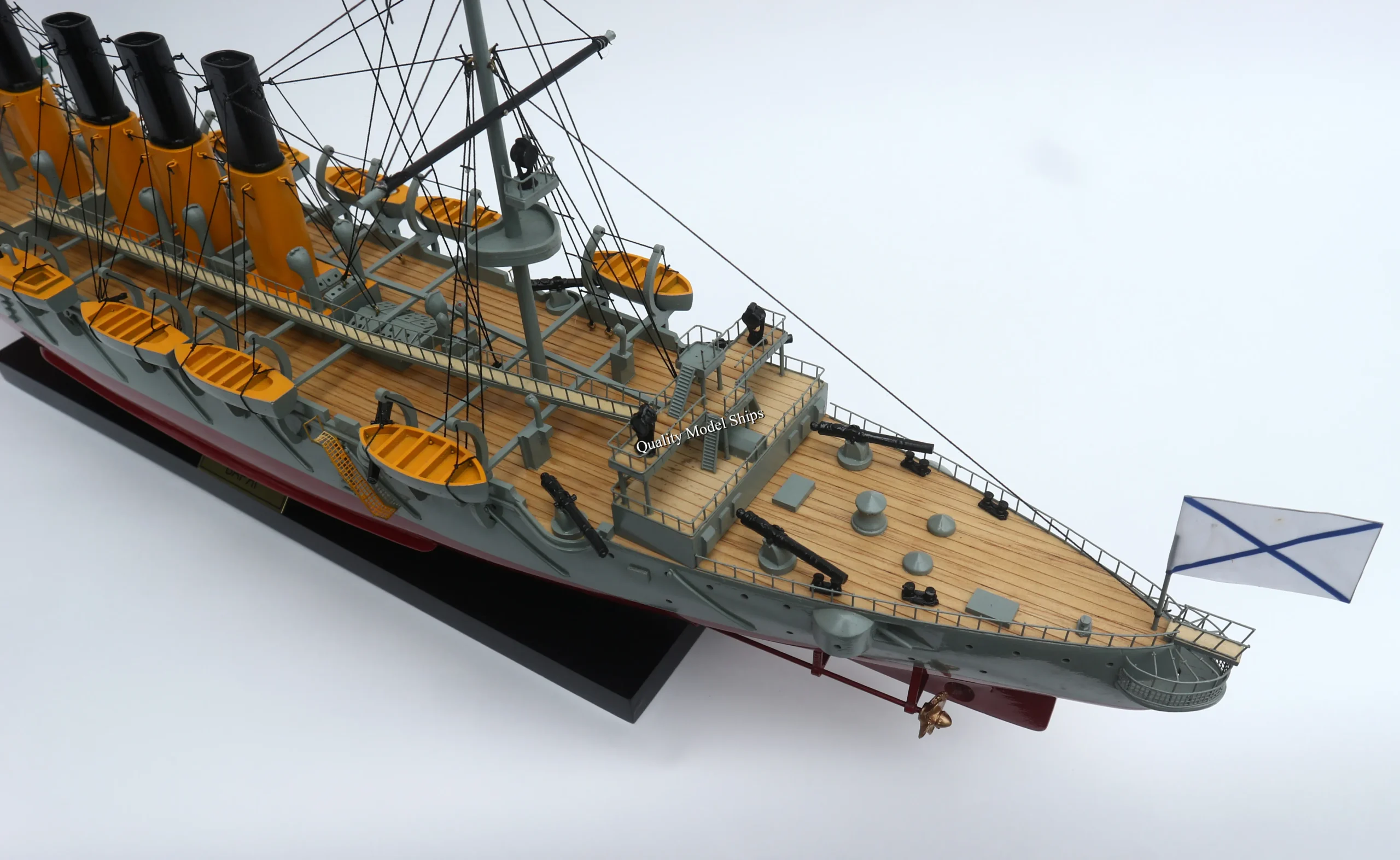 • The hull is made of wood and painted. This model is not a kit and ready for display.